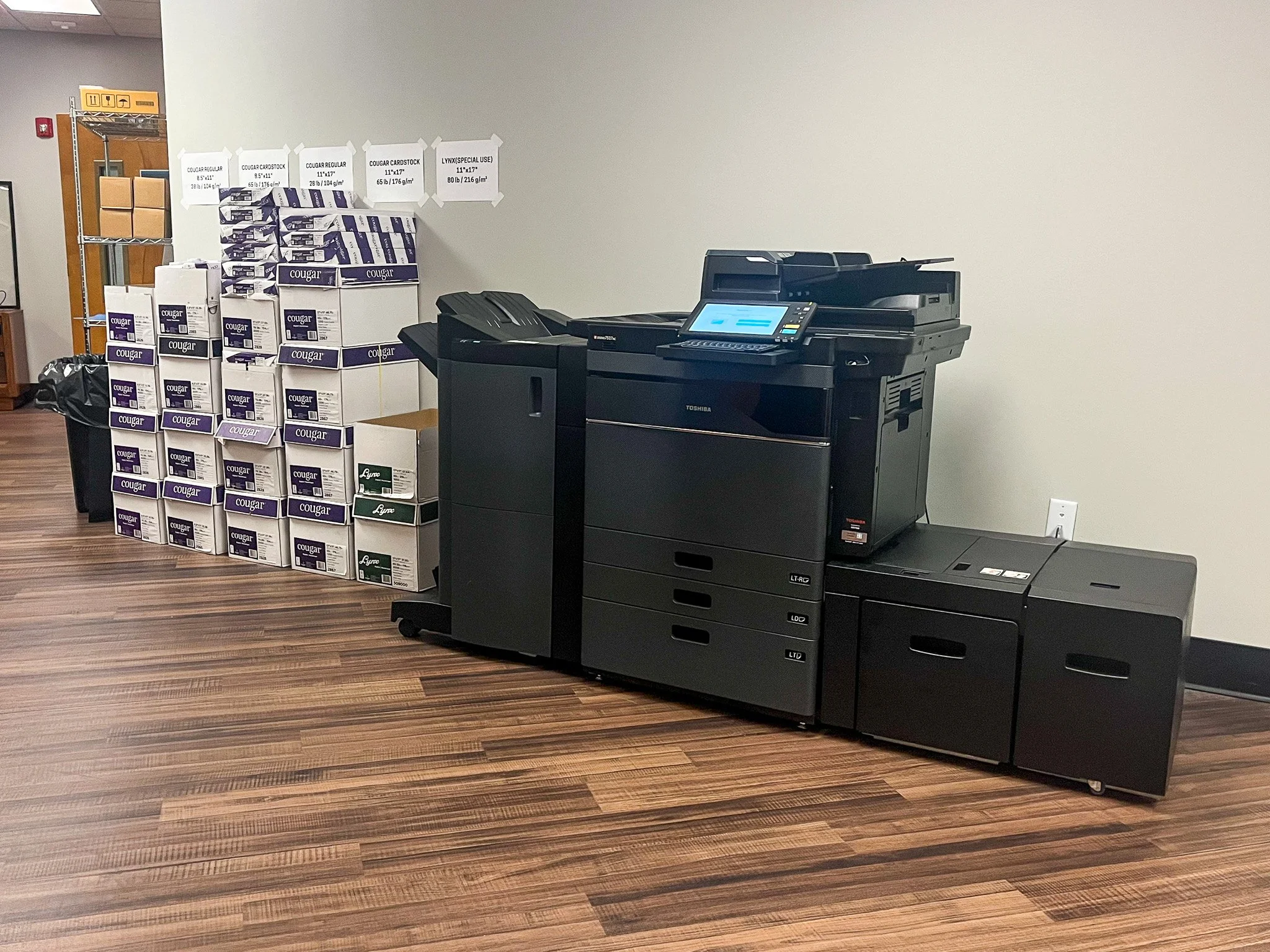 Large format printer for 8-foot tall banners and posters for ministries, and a variety of banners for events.